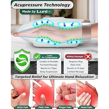 Thông tin sản phẩm Lunix LX7 Electric Hand Massager with Compression, Pressure Point Therapy for Arthritis, Pain Relief and Carpal Tunnel, Shiatsu Massage Machine with Heat, with Hand Warmer, White