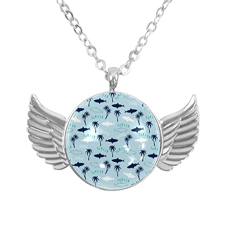 Luoweisi Angel Wings Necklace with Palm Tree Shark, Zinc Alloy Pendant Jewelry Gifts for Men Women