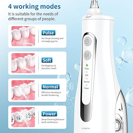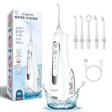 Thông tin sản phẩm LURAFTO Cordless Water Flosser for Teeth, Rechargeable with 4 Modes, Travel-Friendly & IPX7 Waterproof Oral Irrigator with 300ML Water Tank, for Gum Massage & Sensitive Teeth