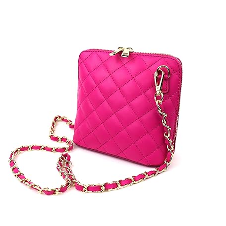 Lusso in pelle Handmade Genuine Italian Leather Handbag with Detachable Straps - Small Leather Crossbody Bag - Minimalist Handbag - Elegant Women's Bag (Fuchsia)