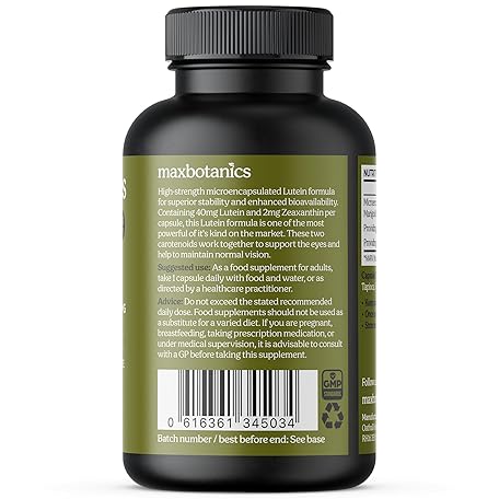 Thương hiệu Max Botanics là cái tên nổi tiếng được rất nhiều khách hàng trên thế giới chọn lựa. Với kiểu dáng đẹp mắt, sang trọng, sản phẩm Lutein 40mg with Zeaxanthin 2mg | Microencapsulated | High Strength | 120 Capsules | Natural Eye Support | No Additives | Vegan | UK Made | GMP (120 Capsule Bottle) là sự lựa chọn hoàn hảo nếu bạn đang tìm mua một món cho riêng mình.