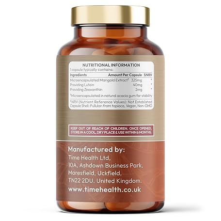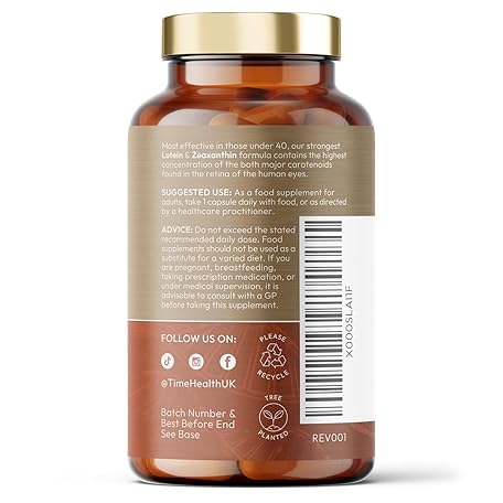 Thương hiệu Time Health là cái tên nổi tiếng được rất nhiều khách hàng trên thế giới chọn lựa. Với kiểu dáng đẹp mắt, sang trọng, sản phẩm Lutein 40mg with Zeaxanthin 2mg – New Micro-encapsulated Formula – 100% Pure Natural Highly Bioavailable – UK Manufactured (120 Capsule Bottle) là sự lựa chọn hoàn hảo nếu bạn đang tìm mua một món cho riêng mình.