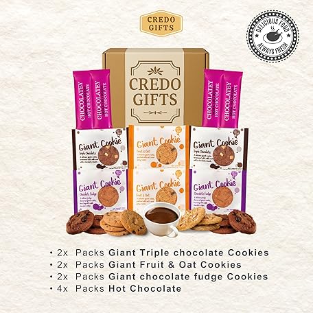 Thương hiệu Credo Gifts là cái tên nổi tiếng được rất nhiều khách hàng trên thế giới chọn lựa. Với kiểu dáng đẹp mắt, sang trọng, sản phẩm Luxury Biscuit Hamper Gift Set With Hot Chocolate – Assorted Giant Cookie Selection With Fruity, Choco Fudge & Triple Choc Treats Plus Hot Chocolate – Biscuits Gift Box For Sharing & Special Occasions là sự lựa chọn hoàn hảo nếu bạn đang tìm mua một món cho riêng mình.
