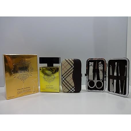 Sản phẩm Luxury Gift Box For Men - GOLD FORTUNE POUR HOMME 100ML EAU DE TOILETTE FOR MEN (SENSATIONAL FRAGRANCES) + 7cs Stainless Steel Nail Care Personal Manicure Kit In Gift Box.044. đang được bán với giá ưu đãi là $33.7791 tại nước Anh.