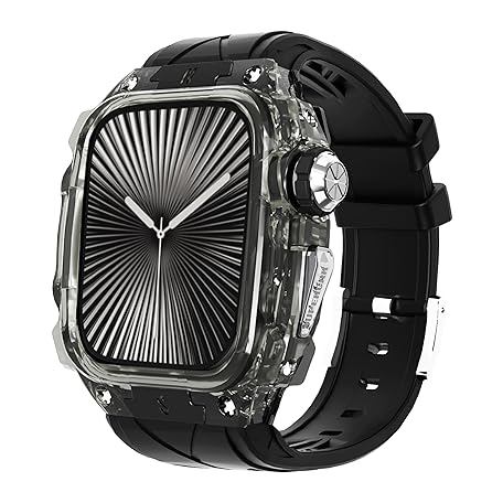 Luxury Translucent Smartwatch Case for Apple Watch Series 10 46mm, Fully Wrapped Lightweight Rugged case with Band, Silicon Strap, Stainless Steel Buttons, Protective Cover for Men/Women (Black)
