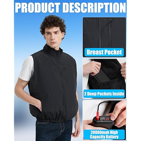 Thông tin sản phẩm Lvkakmox Cooling Fan Vest with 21V 20000mAh Battery – 4-Speed Air-Conditioned Gilet for Men and Women, Ideal for Work, Construction, Outdoor, Cycling