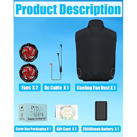 Thông tin sản phẩm Lvkakmox Cooling Fan Vest with 21V 20000mAh Battery – 4-Speed Air-Conditioned Gilet for Men and Women, Ideal for Work, Construction, Outdoor, Cycling
