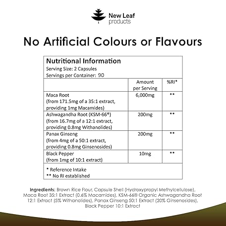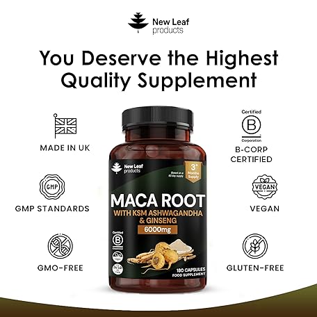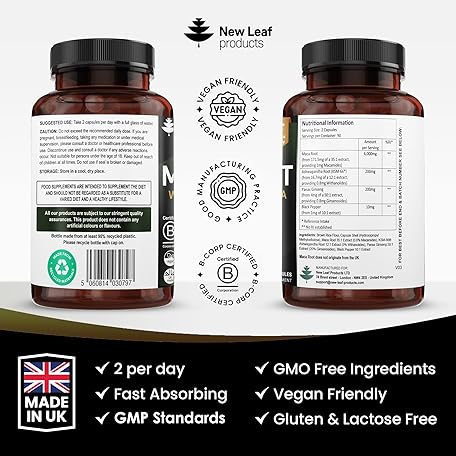 Thương hiệu NEW LEAF PRODUCTS là cái tên nổi tiếng được rất nhiều khách hàng trên thế giới chọn lựa. Với kiểu dáng đẹp mắt, sang trọng, sản phẩm Maca Root Capsules with KSM Ashwagandha and Ginseng - 180 High Strength 6000mg Maca Root + Ashwagandha KSM-66, Panax Ginseng & Black Pepper - Vegan Capsules Made in The UK là sự lựa chọn hoàn hảo nếu bạn đang tìm mua một món cho riêng mình.