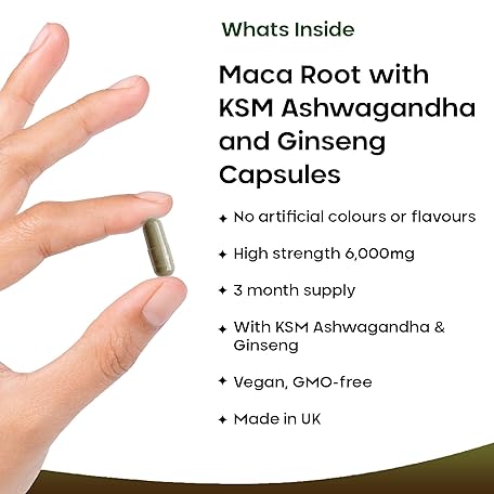 Sản phẩm Maca Root Capsules with KSM Ashwagandha and Ginseng - 180 High Strength 6000mg Maca Root + Ashwagandha KSM-66, Panax Ginseng & Black Pepper - Vegan Capsules Made in The UK đang được bán với giá ưu đãi là $14.3662 tại nước Anh.