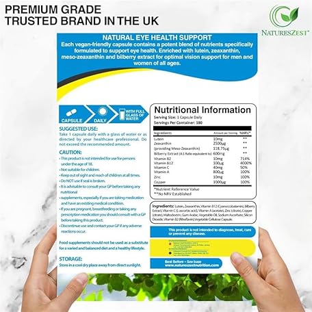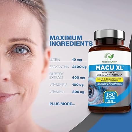 Thương hiệu Natures Zest là cái tên nổi tiếng được rất nhiều khách hàng trên thế giới chọn lựa. Với kiểu dáng đẹp mắt, sang trọng, sản phẩm Macu XL - Lutein and Zeaxanthin Supplement - 6 Month Supply with Meso Zeaxanthin, Bilberry Extract, Vitamins A, B12 & Zinc, 180 Vegan Capsules - Eye Supplement for Vision Health – Eye Vitamins  là sự lựa chọn hoàn hảo nếu bạn đang tìm mua một món  cho riêng mình.
