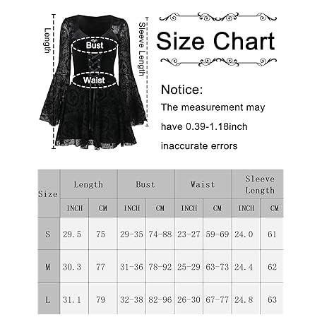 Thông tin sản phẩm Maeau Women's Black Gothic & Y2k Vintage Punk Dress - Mini, Cocktail & Party Evening Dresses - A Line, Swing & Long Sleeve