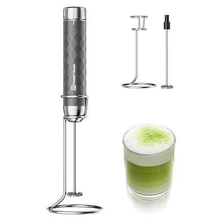 Maestri House Handheld Milk Frother, Eectric Whisk with Stepless Speed Control, Rechargeable Blender with Stainless Steel Whisk and Stand, Drink Mixer for Matcha, Latte, Cappuccino (Grey)