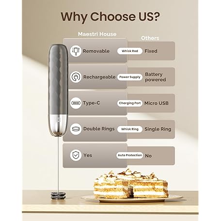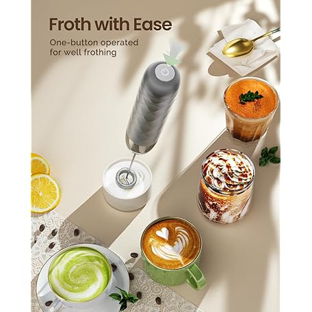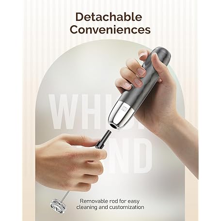 Thông tin sản phẩm Maestri House Rechargeable Milk Frother, Handheld Electric Foam Maker Detachable Stainless Steel Whisk Drink Mixer Foamer Mini Blender for Matcha, No Stand, LunaFro Mini (Medium Gray and Silver)