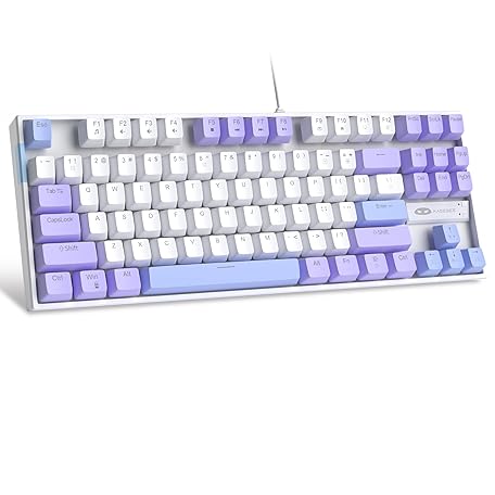 MageGee 75% Mechanical Gaming Keyboard with Red Switch, LED Blue Backlit, 87 Keys TKL Wired for Windows Laptop PC Gamer - White/Purple