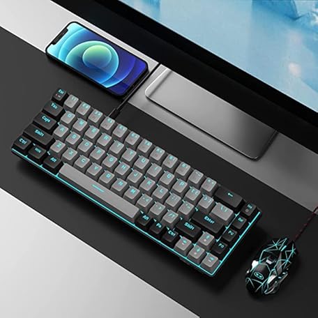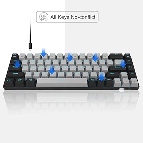Thông tin sản phẩm MageGee Portable 60% Gaming Mechanical Keyboard, Minimalist MK-Box Ice Blue Backlit Compact 68 Keys Wired Office Keyboard with Blue Switch for Windows Laptop PC Mac Convenient(Black & Grey)