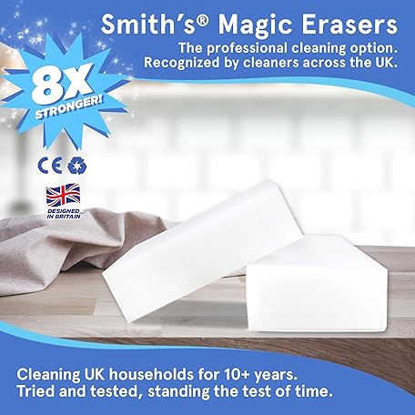 Sản phẩm Magic Erasers for Cleaning by Smith’s | 30 Pack | Trusted by Professional Cleaners | Serving UK Homes for Over 10+ Years | 8X Stronger Than Cellulose | Chemical Free đang được bán với giá ưu đãi là $17.9523 tại nước Anh.