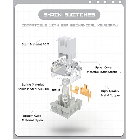 Sản phẩm MAGIC-REFINER ATTACK SHARK 100 Pcs Mechanical Keyboard Switch, Linear Switch, 3 Pin 42gf RGB SMD Slot, Transparent Cover, MX Key Switches for DIY Kit/Gaming Keyboard/Barebones Keyboard, Milky White đang được bán với giá ưu đãi là $26.3344 tại nước Anh.