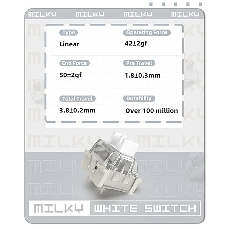 Thông tin sản phẩm MAGIC-REFINER ATTACK SHARK 100 Pcs Mechanical Keyboard Switch, Linear Switch, 3 Pin 42gf RGB SMD Slot, Transparent Cover, MX Key Switches for DIY Kit/Gaming Keyboard/Barebones Keyboard, Milky White