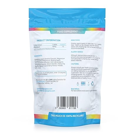 Sản phẩm Magnesium Chewable Tablets 50mg – Balanced Dosage for Children from 167mg of Magnesium Citrate – Easily absorbable & Highly bioavailable - Tropical Berry Flavour with no Added Sugar - Vegan & UK Made đang được bán với giá ưu đãi là $12.862 tại nước Anh.