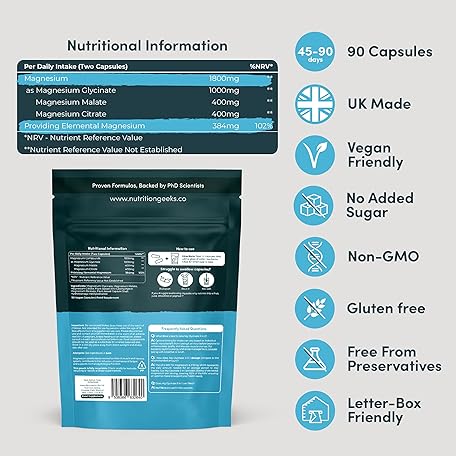 Thương hiệu Nutrition Geeks là cái tên nổi tiếng được rất nhiều khách hàng trên thế giới chọn lựa. Với kiểu dáng đẹp mắt, sang trọng, sản phẩm Magnesium Glycinate 3-in-1 Complex - 1800mg Supplements as Bisglycinate, Citrate & Malate 90 Vegan Capsules, Triple High Absorption 384mg Elemental, UK Made (Packaging Design May Vary) là sự lựa chọn hoàn hảo nếu bạn đang tìm mua một món cho riêng mình.