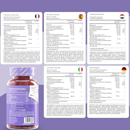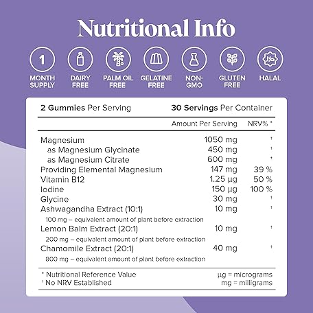 Thông tin sản phẩm Magnesium Glycinate Gummies - Calm Gummies with 450mg Magnesium Glycinate, Ashwagandha, Glycine, Lemon Balm, Chamomile, Vitamin B12 and Iodine – Rescue and Calms Your Mind - Novomins