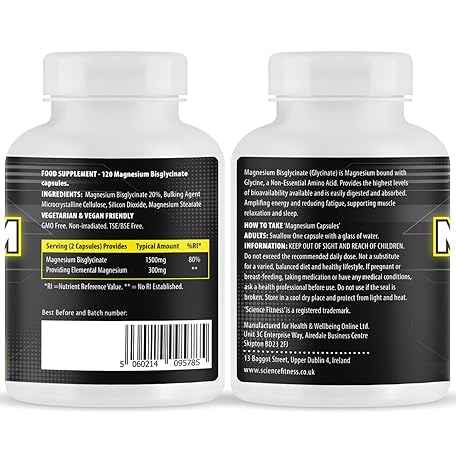 Thông tin sản phẩm Magnesium Glycinate Supplement, 240 Capsules of Magnesium Bisglycinate, Maximum Absorption,1500mg per serving, Made in The UK-Science Fitness
