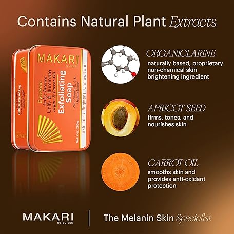 Thông tin sản phẩm Makari Extreme Carrot & Argan Oil Bar Soap 7oz. – Anti-Aging Soap Exfoliates & Lightens Skin with Organiclarine™ – Whitening Treatment for Dark Spots, Acne Scars, Sun Patches & Hyperpigmentation