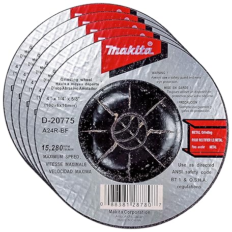 Makita 5 Pack - 4 Inch Grinding Wheel For 4" Grinders - Aggressive Grinding For Metal - 4" x 1/4 For M10 x 1.25" Spindle Thread