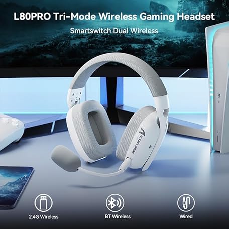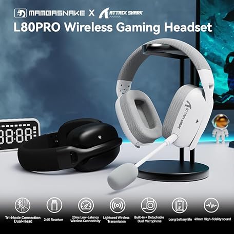 Thông tin sản phẩm MAMBASNAKE ATTACK SHARK L80PRO Ultralight Wireless Gaming Headset, 7.1 Surround Sound, Lightweight Headphone With Bendable Dual Mic, Tri-Mode(2.4G/BT/3.5mm Wired), 40mm Driver,for PC/Mac/PS/XBOX White