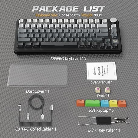 Thông tin sản phẩm MAMBASNAKE x ATTACK SHARK X85PRO Gasket Mechanical Keyboard with PBT Side-Printed Keycap, 75% Wireless Gaming Keyboard with TFT Screen&CNC Knob, 2.4Ghz/BT5.1/USB-C, Hot-Swap Linear Switch, RGB