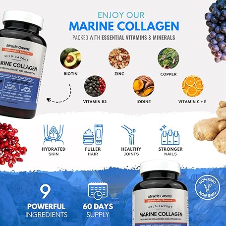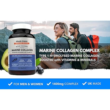 Thông tin sản phẩm Marine Collagen 1400mg | 120 Capsules with Biotin, Hyaluronic Acid, Vitamin C, E, B2, Zinc, Copper & Iodine | Hydrolysed Type 1 Collagen for Skin, Hair, and Joints | from Sustainable North Sea Fish