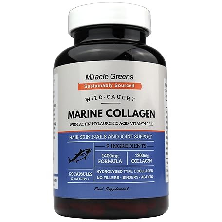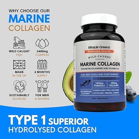 Sản phẩm Marine Collagen 1400mg | 120 Capsules with Biotin, Hyaluronic Acid, Vitamin C, E, B2, Zinc, Copper & Iodine | Hydrolysed Type 1 Collagen for Skin, Hair, and Joints | from Sustainable North Sea Fish đang được bán với giá ưu đãi là $23.3042 tại nước Anh.
