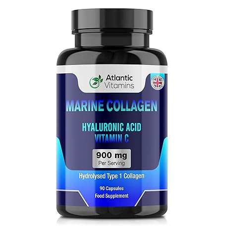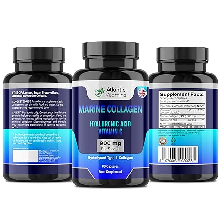 Sản phẩm Marine Collagen 900 mg - High Strength 90 Capsules Collagen with Hyaluronic Acid and Vitamin C for Skin, Joints and Hair - Type 1 Hydrolysed Collagen Supplements for Women & Men - UK Made đang được bán với giá ưu đãi là $14.3226 tại nước Anh.