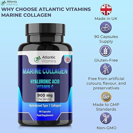Thương hiệu Atlantic Vitamins là cái tên nổi tiếng được rất nhiều khách hàng trên thế giới chọn lựa. Với kiểu dáng đẹp mắt, sang trọng, sản phẩm Marine Collagen 900 mg - High Strength 90 Capsules Collagen with Hyaluronic Acid and Vitamin C for Skin, Joints and Hair - Type 1 Hydrolysed Collagen Supplements for Women & Men - UK Made là sự lựa chọn hoàn hảo nếu bạn đang tìm mua một món cho riêng mình.