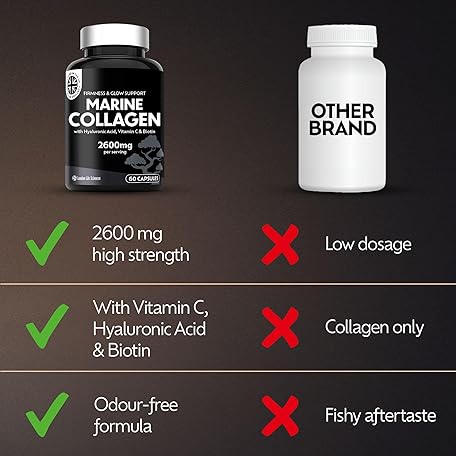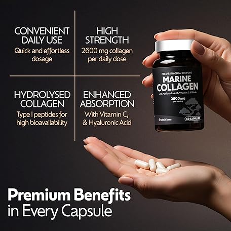 Thông tin sản phẩm Marine Collagen Capsules 2600mg – Type 1 & 3 Hydrolysed – with Hyaluronic Acid & Vitamin C – High Strength Complex for Skin, Hair, Nails & Joints – 60 Capsules – Women & Men – UK Formulated