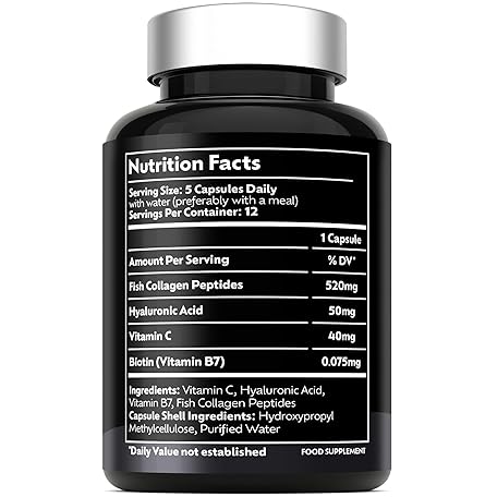 Sản phẩm Marine Collagen Capsules 2600mg – Type 1 & 3 Hydrolysed – with Hyaluronic Acid & Vitamin C – High Strength Complex for Skin, Hair, Nails & Joints – 60 Capsules – Women & Men – UK Formulated đang được bán với giá ưu đãi là $10.137 tại nước Anh.