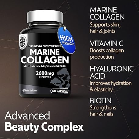 Thương hiệu LONDON LIFE SCIENCES là cái tên nổi tiếng được rất nhiều khách hàng trên thế giới chọn lựa. Với kiểu dáng đẹp mắt, sang trọng, sản phẩm Marine Collagen Capsules 2600mg – Type 1 & 3 Hydrolysed – with Hyaluronic Acid & Vitamin C – High Strength Complex for Skin, Hair, Nails & Joints – 60 Capsules – Women & Men – UK Formulated là sự lựa chọn hoàn hảo nếu bạn đang tìm mua một món cho riêng mình.