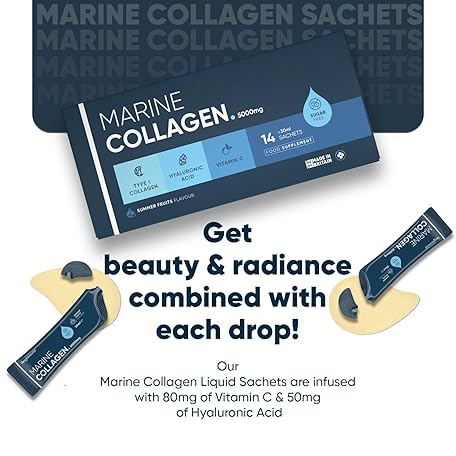 Sản phẩm Marine Collagen Liquid | 30ml x 14 Sachets | 5000mg Hydrolysed Liquid Collagen Sachets | with Vitamin C & Hyaluronic Acid | Type 1 Collagen | Tasty Collagen Supplements for Women & Men đang được bán với giá ưu đãi là $31.4356 tại nước Anh.