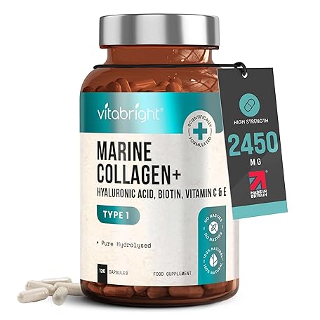 Sản phẩm Marine Collagen Supplements for Women 2450mg Complex | 120 Hydrolyzed Marine Collagen Capsules with Hyaluronic Acid | Skin Supplements for Women | High Strength Collegen Peptides Tablets | Vitabright đang được bán với giá ưu đãi là $21.7891 tại nước Anh.