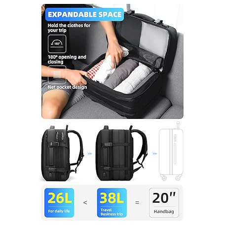 Thông tin sản phẩm MARK RYDEN Laptop Backpack, Expandable 26L-38L Travel Backpack Cabin Size, Business Backpack Men with USB Charging Port Fit 17.3 Laptop-YKK Zip