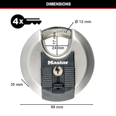 Sản phẩm MASTER LOCK Heavy Duty Disc Padlock, Security Level 8/10, Outdoor, Keyed, Stainless Steel, Shrouded Shackle đang được bán với giá ưu đãi là $18.9442 tại nước Anh.