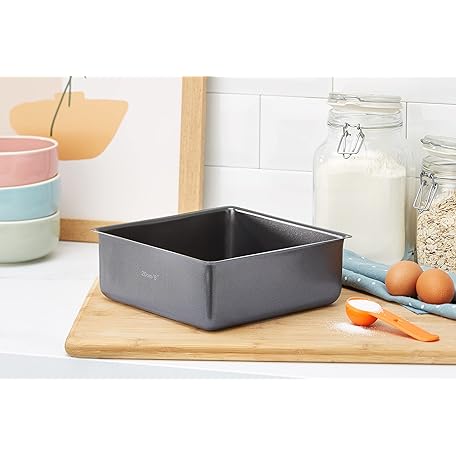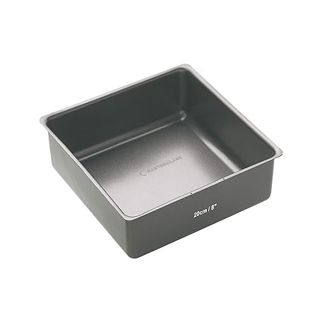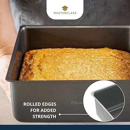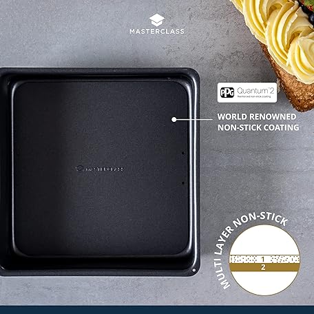 MasterClass Baking Tray, Cake Tin Loose Bottom Pan with PTFE, PFOA and BPA Free Non Stick, Deep Cake Tin, Carbon Steel, Square, 20cm (8")