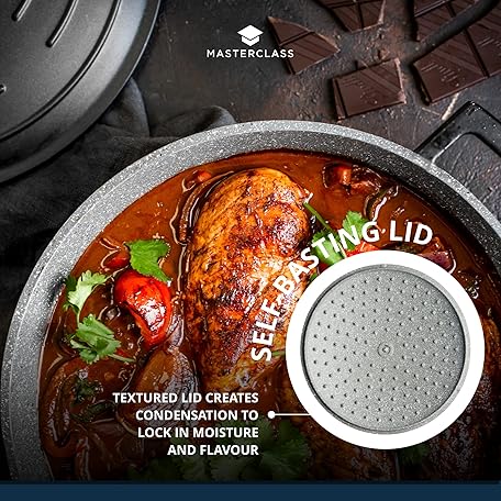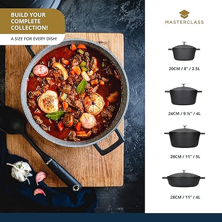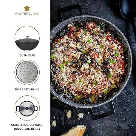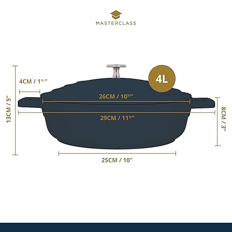 Thông tin sản phẩm MasterClass Shallow Casserole Dish with Lid 4L/28 cm, Lightweight Cast Aluminium, Induction Hob and Oven Safe, Black