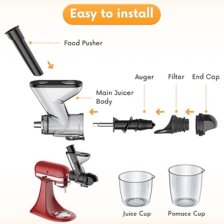 Masticating Juicer Attachment for KitchenAid Stand Mixer, Cold Pressed Juicer Machine,Slow Masticating Juicer Attachment with Dual Feed Chute and Pusher by FGREEBLE