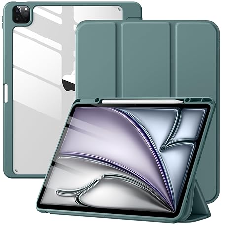 Mastten for iPad Air 13 inch Case (M3 2025 / M2 2024) / iPad Pro 12.9 inch Case (6th/5th/4th/3rd Generation 2022/2021/2020/2018), Built-in Pencil Holder & Auto Wake/Sleep, Clear Back Shell, Pinegreen