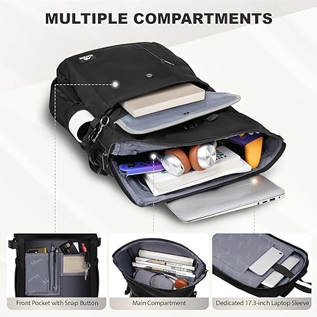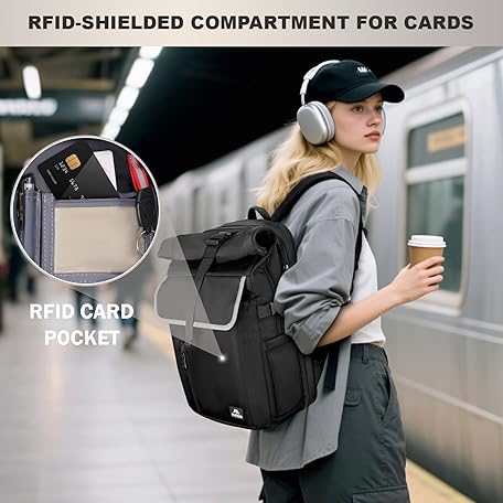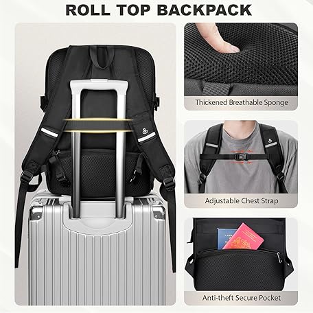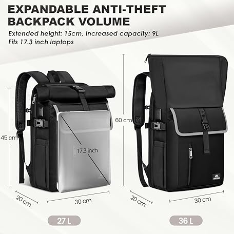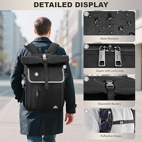 Thông tin sản phẩm MATEIN MATEIN 36L Large Roll Top Backpack, 17 Inch Waterproof Laptop Backpack with RFID Pocket, Rolltop Rucksack with USB Charging Port, Wide Opening Waterproof Rucksack for Women and Men, Work, Black