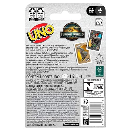 Thông tin sản phẩm Mattel Games UNO Jurassic World Rebirth Card Game for Kids, Family & Adult Games Nights, Deck with Special Rule & Images Inspired by the Movie, JFT28