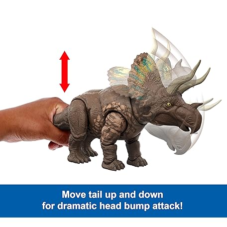 Thông tin sản phẩm Mattel Jurassic World Rebirth Gigantic Thrashers Eotriceratops Dinosaur Figure Toy, Large Species, 2 Tail Activated Rampage Attacks, Digital Play, JGB93