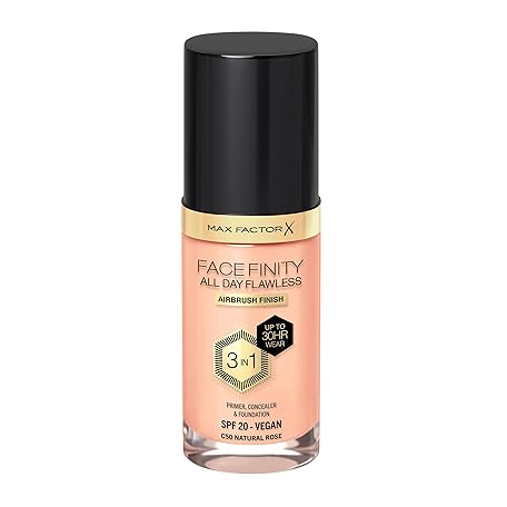 Sản phẩm Max Factor Facefinity All Day Flawless Foundation - 3-in-1 Concealer, Liquid Foundation & Face Primer - Up To 30hr Wear - Flawless Airbrush Finish, SPF 20, Vegan - C50 Natural Rose - 30ml đang được bán với giá ưu đãi là $7.1831 tại nước Anh.
