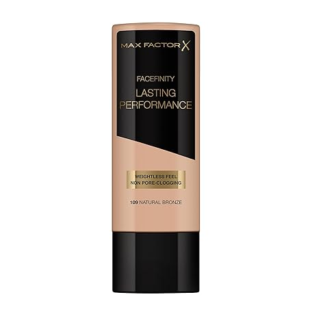 Max Factor Lasting Performance Liquid Foundation, 109 Natural Bronze, Full Coverage, Flawless and Radiant Finish, Lightweight Formula, Smudge Resistant, Non Pore-Clogging, Fragrance Free, 35ml